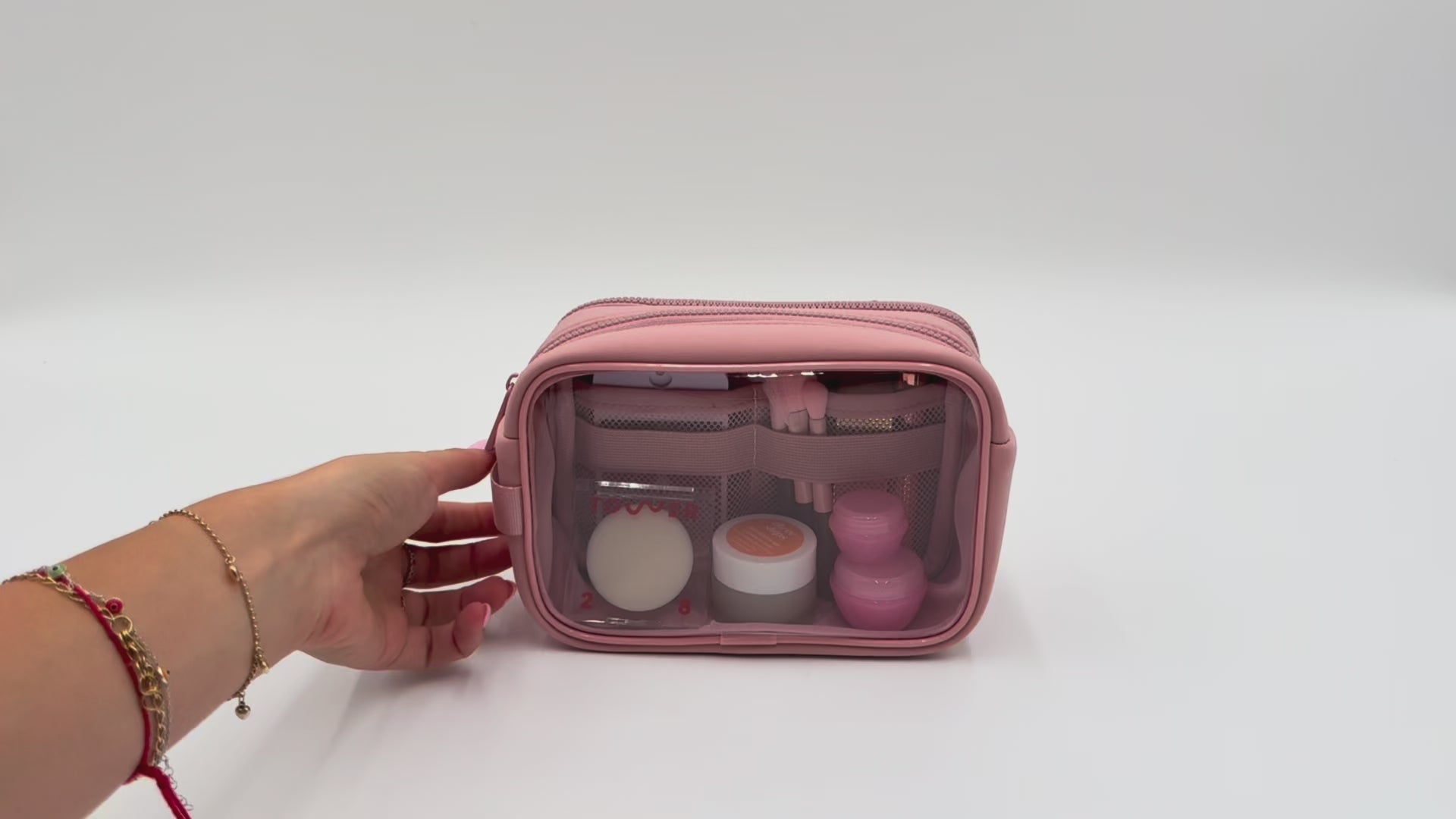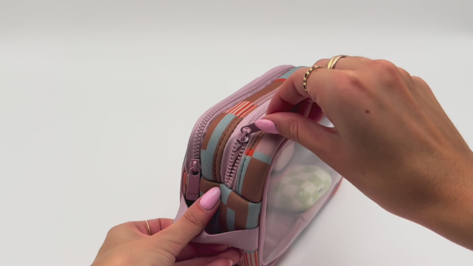 Keep your essentials sorted and visible with this stylish double-zip clarity case featuring two compartments