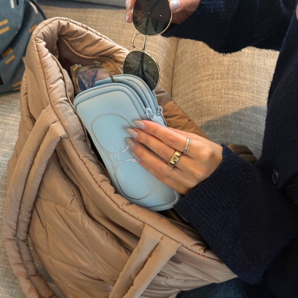 Complete  with two specific pockets so you can hold multiple pairs in one pouch.